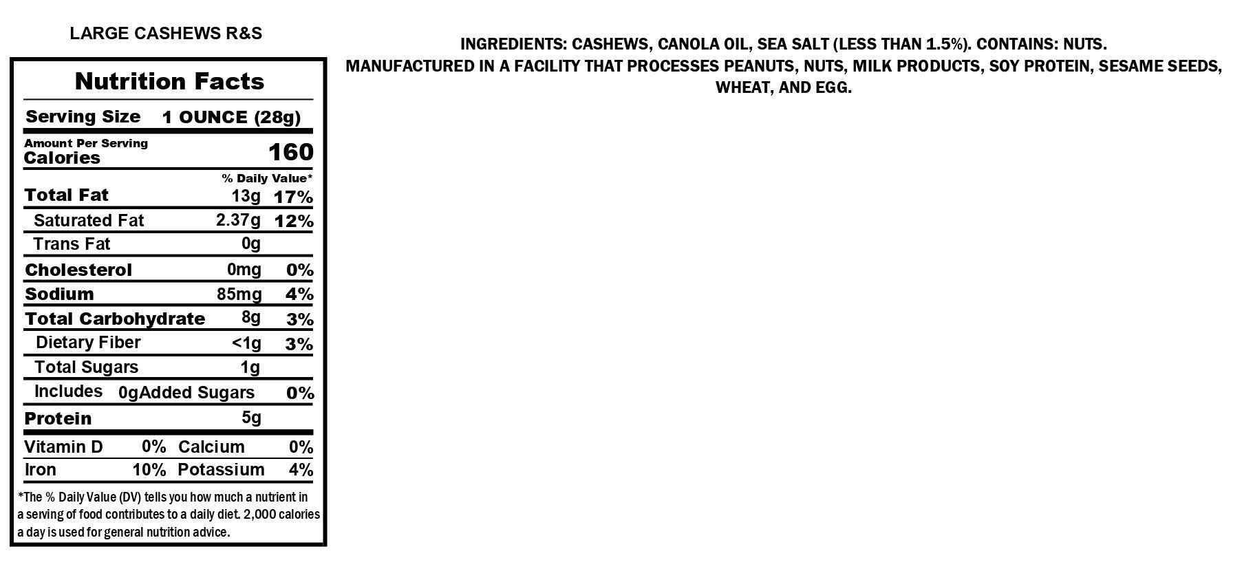 The best tasting cashews you can find! Roasted and Salted to perfection on every nut.
